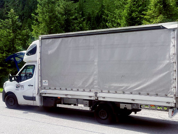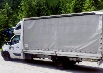 Cégünk 3 db 10 palettás roló ponyvás Renault Master típusú furgonnal rendelkezik melyek oldalról targoncával és felülről is rakhatók daruval.